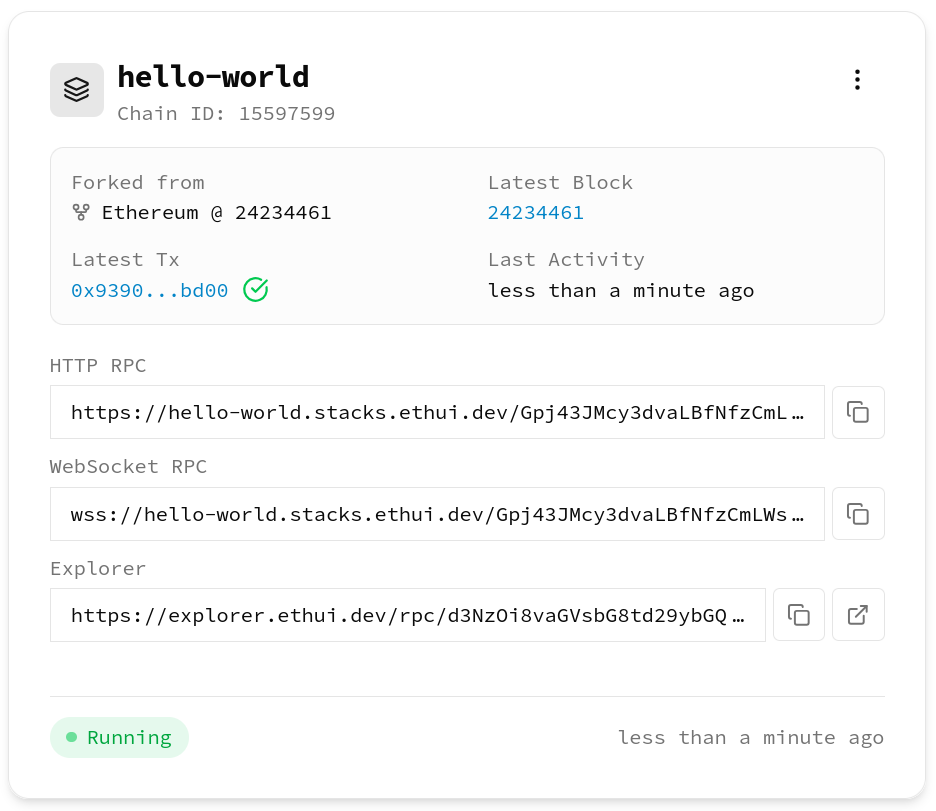 Stacks can also be bootstrapped by forking other networks, where only an upstream RPC url is required.